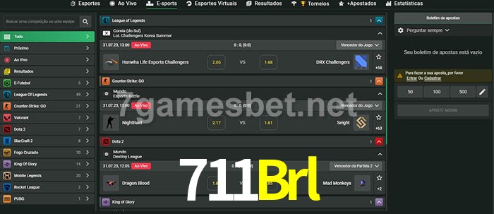 O 711Brl oferece uma grande seleção de opções de apostas em e-sports com probabilidades competitivas